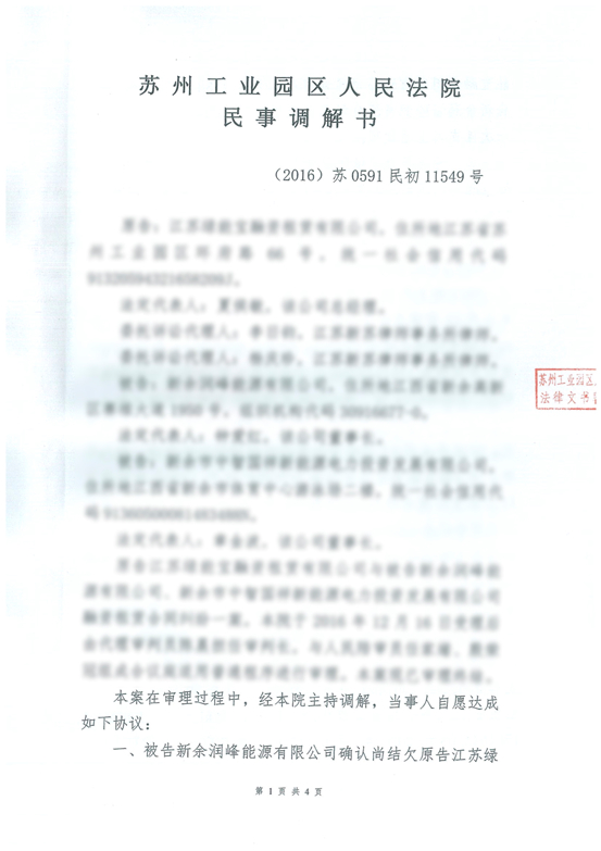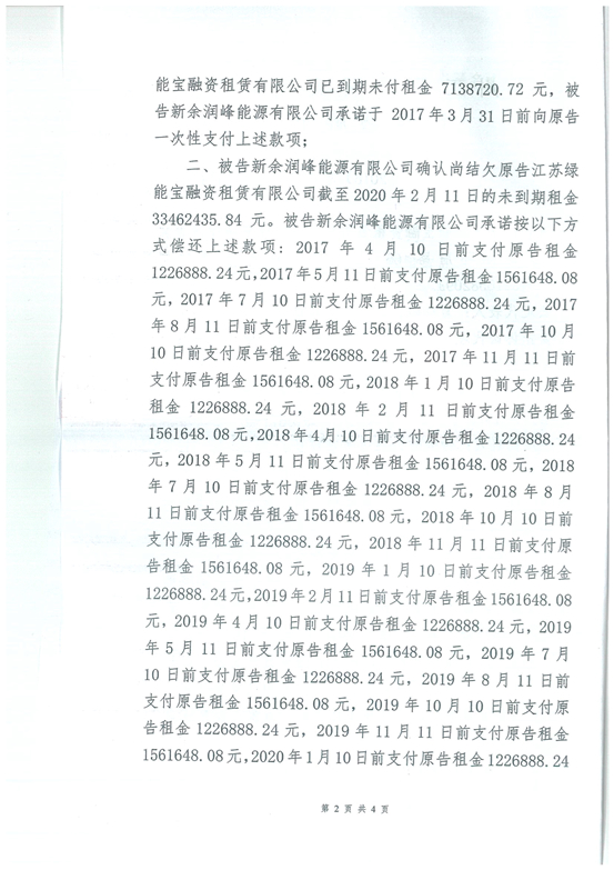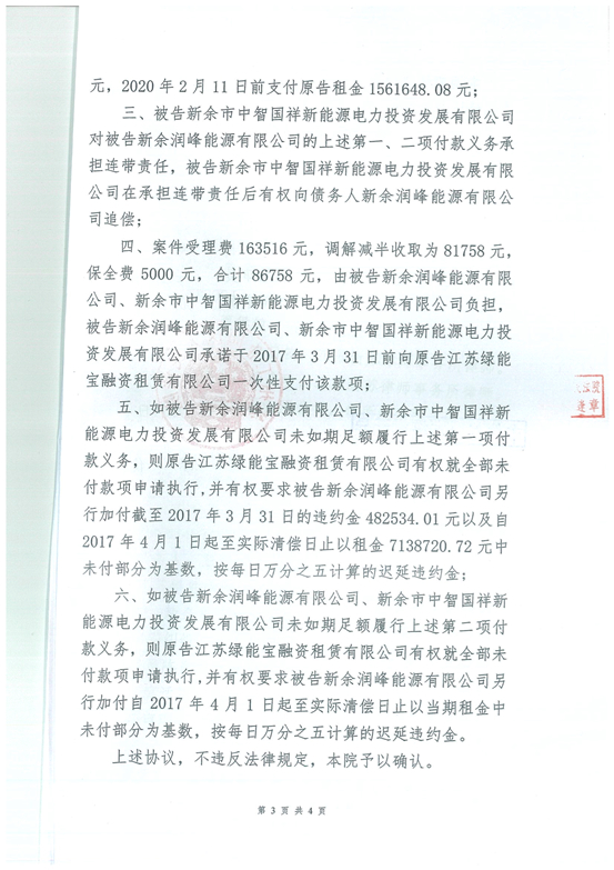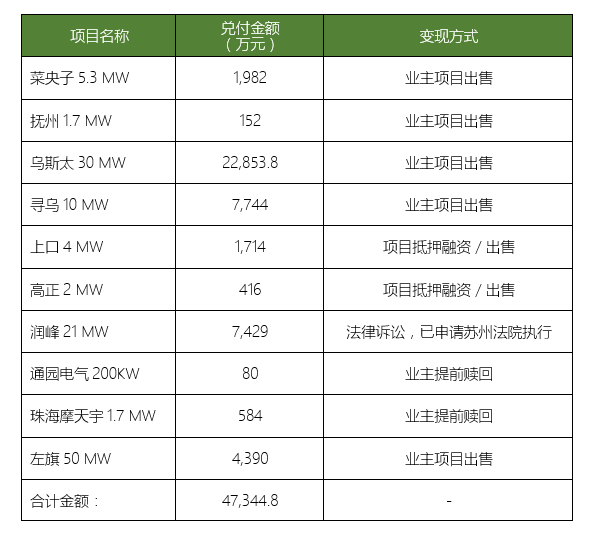 除綠能寶線上項目做兌付支撐外,SPI集團(tuán)將為接下來兌付工作的順利進(jìn)行提供強(qiáng)有力的項目保證。包括:涼城項目20MW,新業(yè)主為招商新能源子公司,尚有總額達(dá)1.43億元的應(yīng)收賬款,我公司已經(jīng)采取訴訟措施,盡快完成應(yīng)收賬款的回收;中衛(wèi)項目,我公司將通過訴訟及項目協(xié)助業(yè)主出售并行的方式,實現(xiàn)總額達(dá)2.35億元的資金回收工作,其中,5,500萬元已經(jīng)由法院判決并申請強(qiáng)制執(zhí)行,并已協(xié)助項目業(yè)主與意向買家商洽,且溝通良好,很快將實現(xiàn)項目出售;巨鹿50MW在建項目,將通過項目出售方式回收約1.5億元以上資金。