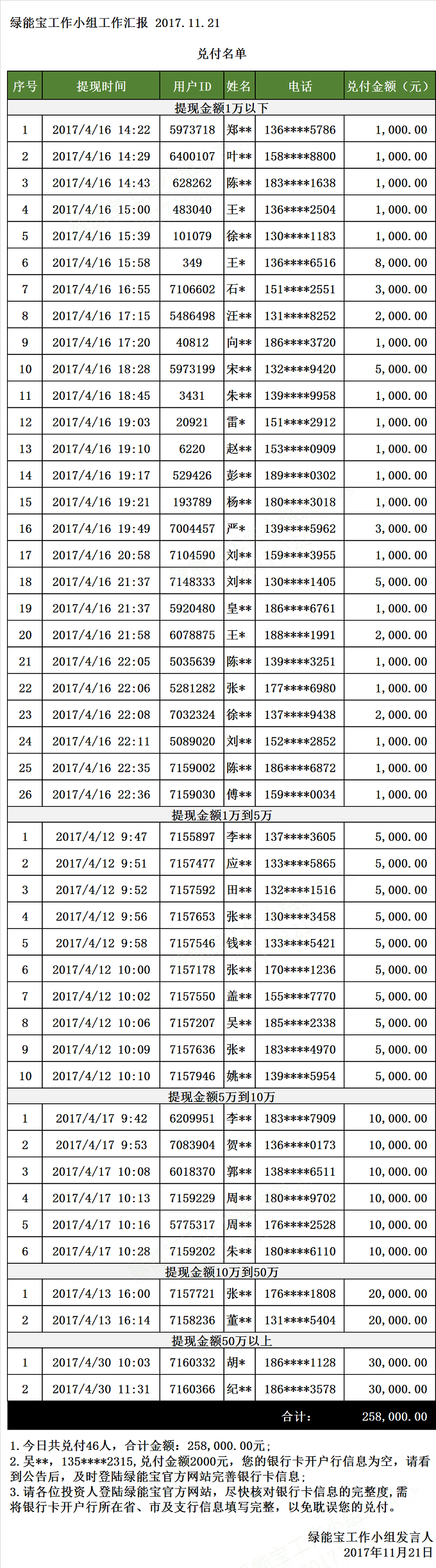 兌付名單(2017年11月21日)