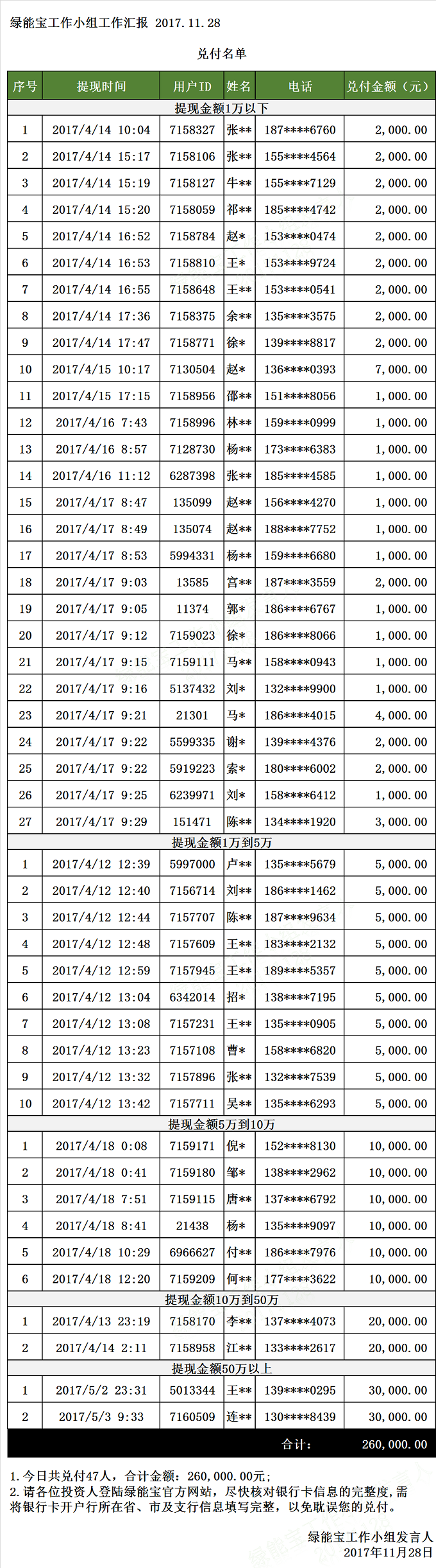 兌付名單(2017年11月28日)