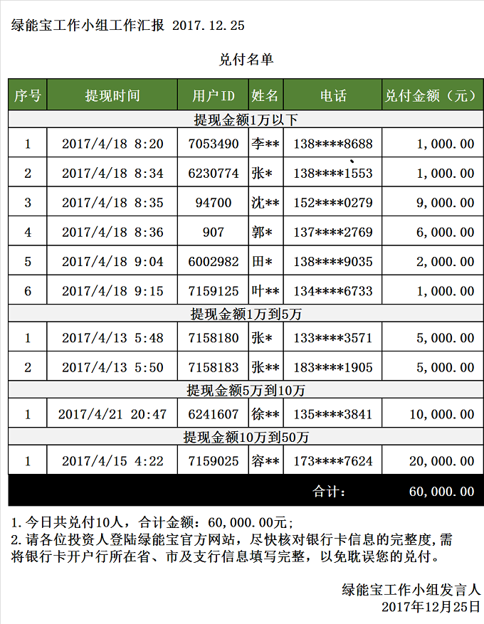兌付名單(2017年12月25日)