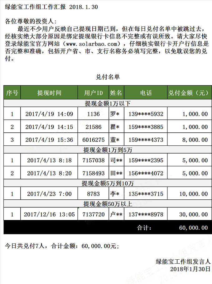 【上一條】兌付名單(2018年1月31日)