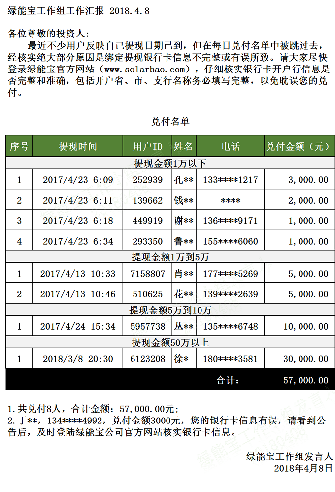 【下一條】兌付名單(2018年4月4日)