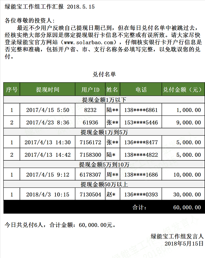 【下一條】 兌付名單(2018年5月14日)