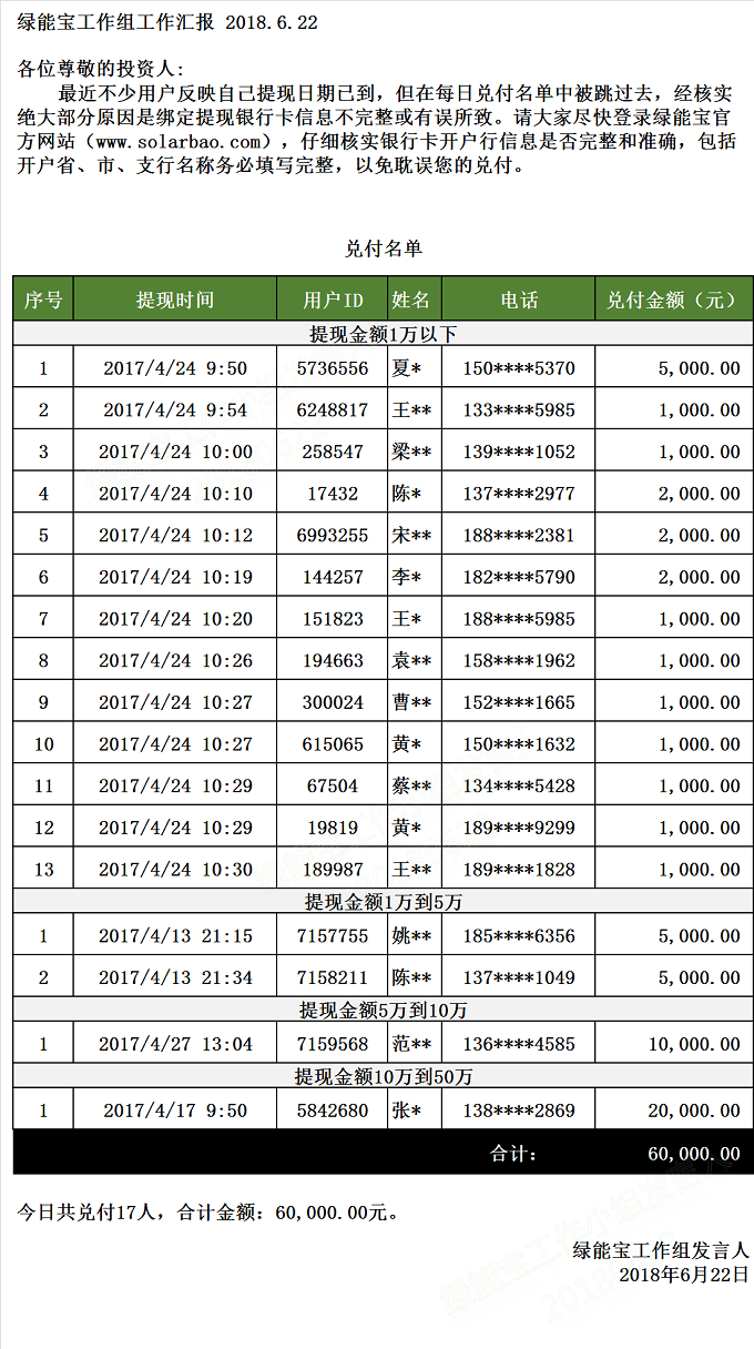 【下一條】兌付名單(2018年6月21日)