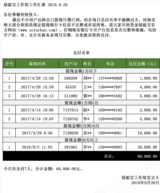 兌付名單(2018年9月20日)