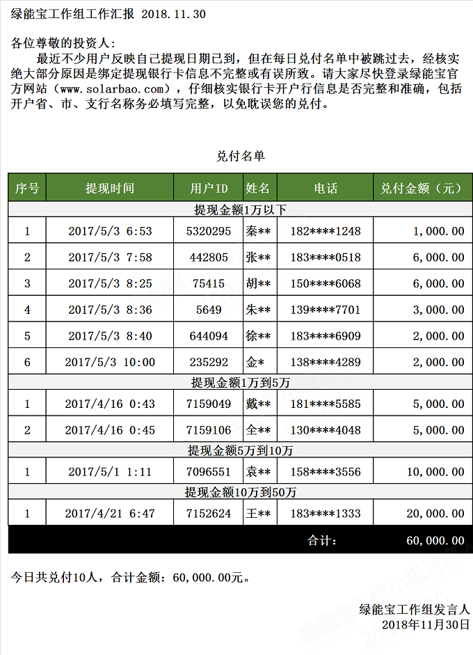 【下一條】兌付名單(2018年11月29日)