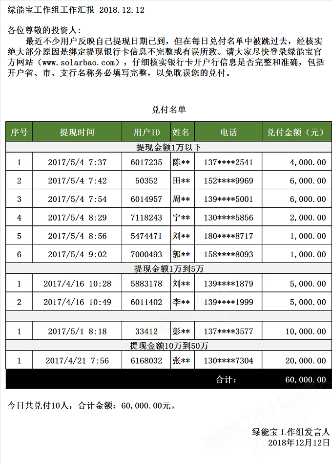 兌付名單(2018年12月12日)