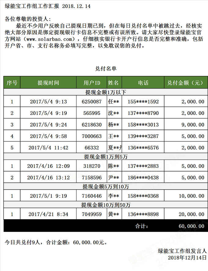 兌付名單(2018年12月14日)