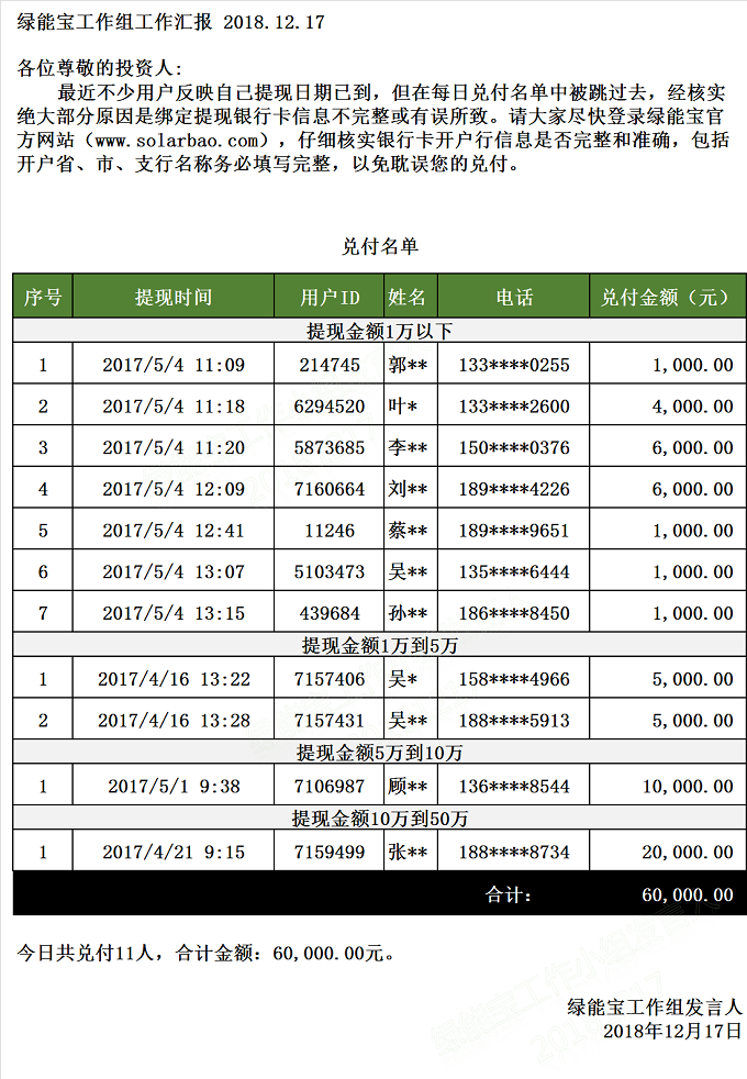 兌付名單(2018年12月17日)